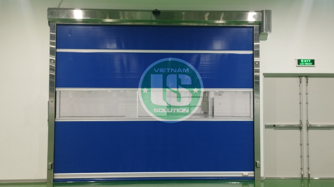 PVC High Speed Door là cửa cuốn tự động tốc độ cao dùng bên trong nhà máy nhằm giảm thiểu và ngăn chặn bụi, sự thất thoát nhiệt trong các NM Thực Phẩm, Dược, Điện Tử,... Có thể sử dụng Radar phân biệt người và xe.